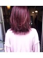 細かくハイライトをいれたデザインカラーにヴァイオレットピンクが可愛いミディアムスタイル☆髪質改善チューニングストレートをプラスしておさまりの良い柔らかい髪質に☆