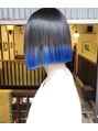 こだわりラインボブにブルーがアクセントのスタイル★シンプルスタイルから個性的なスタイルまで幅広くご提案致します★似合うスタイルご提案致します★