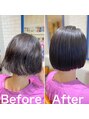 美髪矯正とヘアエステ。コロンとしたボブも艶のあるストレートで美髪に。