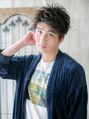 計算された無造作感とマットな質感で、モード&カジュアルに仕上げた無造作ショート。デコ出しアップバングと落ち着いた黒髪で清潔感をアピール。ビジネスでも使えるビジカジにアップデート。オールバックもクール。