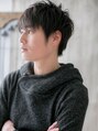 トップを立ち上げてスタイルアップ効果を狙った、アシンメトリーな無造作ショート。斜めバングで目元を印象付けてセクシーに。爽やかな黒髪サイドパートはビジカジスタイルにもピッタリ。