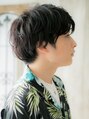 トップにボリュームを持たせてふわっと仕上げた黒髪ショート。スタイルアップ効果を狙ったやわらかなジェントルマンスタイル。サイドはツーブロックや刈り上げでスッキリ見せるのが◎