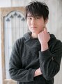 トップを立ち上げてスタイルアップ効果を狙った、アシンメトリーな無造作ショート。斜めバングで目元を印象付けてセクシーに。爽やかな黒髪サイドパートはビジカジスタイルにもピッタリ。