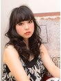 目の上ギリギリで重めにカットしてカールした前髪がポイント☆ウェーブは中間からリッジをしっかりつけて、ランダムな毛束感でクールさを出しました。
