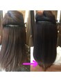 根元10センチまでを、縮毛矯正!毎度通われているお客様、ある程度毛先しっかり伸ばしてあるので、あとは、根元をしっかりと繋いでいきます。