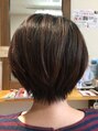 丸味前下がりマッシュショートスタイルです。綺麗に見えるシルエットになってますので、で、どなたでも似合わせることができます。スタイリングも楽にできます♪