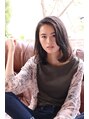 クールなミディアムワンカールスタイル。地毛の自然なダークブラウンがより大人っぽさを際立たせます!重めの質感で、毛先までツヤツヤに!鎖骨付近のミディアムスタイルは女性らしいラインを作ってくれます☆彡【 藤枝/髪質改善/カラー】