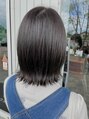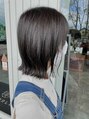 カットは肩についてハネる長さでセットが楽な長さにしました。毛先は軽めにして自然な動きが出るようにしました。カラーはトーンは少し抑えて赤味も消してアッシュグレージュカラーに。暗めだけど透明感もあるので重く見えにくいです。【藤枝/髪質改善】