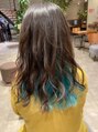 ロングの長さでインナーにブルーのカラーを入れています。【藤枝/藤枝駅/焼津/島田/髪質改善/オーガニックカラー/デザインカラー/ハイライト/インナーカラー/ヘッドスパ/トリートメント】