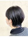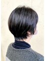 カットは襟足を残したショートスタイル首が細く見えるようにくびれを作っています。寒い時期も安心です♪【藤枝/藤枝駅/焼津/島田/髪質改善/オーガニックカラー/デザインカラー/ハイライト/インナーカラー/ヘッドスパ/トリートメント】