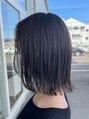 カットは長さが型につかないぐらいの切りっぱなしボブになっています。カラーは赤みを抑えたオリーブ系で全体にハイライトを細めに入れて透明感がでるようにしています。【藤枝/髪質改善/オーガニックカラー/デザインカラー/ハイライト/インナーカラー】