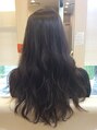 カラーは暗めのグレージュカラーに目立ち過ぎない馴染みやすいハイライトカラーを入れました。硬く見えやすい暗髪にはさらに、デジタルパーマで大きなゆるウェーブをかけると柔らかい印象になります