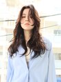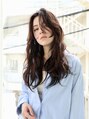 かきあげバング/外国人風ウェーブ/ウェットヘア/暗髪/元町