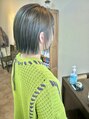 生え際ギリギリの切りっぱなしボブです。内巻き外ハネどちらでもいけます!バイカルテで手触り、艶感最高です☆オリーブ感も感じられるカラーになっています♪おすすめです(^^)