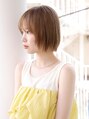 切りっぱなし/透けバング/パールベージュ/ミニボブ/本牧