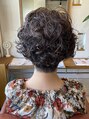 くせ毛風の動きを活かしたショートパーマスタイル。トップから全体にランダムなカールを入れ、ふんわりとしたボリューム感。襟足はタイトに収めてメリハリをつけ、大人っぽく仕上げました。小さめのピアス付けてもチラ見えするのでおすすめです。