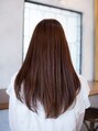さらさらロングのナチュラルストレート。毛先は動きと軽さがでるように適度に質感調整をしています。前髪は少しラウンドにカットしてから毛先に軽くワンカールをつけて柔らかい雰囲気に☆ツヤの出るブラウン系カラーで触りたくなる髪に!【平井】