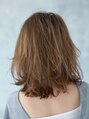 肩に掛かる長さのミディアムスタイル!少しレイヤーを入れて、耳の高さからウエーブを出すゆるふわパーマスタイルです。カラーは明るめなライトベージュブラウンで、透明感を出して柔らかい雰囲気になるようにしました!【平井】