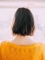 あご下でカットしたノーマルボブ。ナチュラルに毛先が内側に入るようにカットしているので、スタイリングも楽チン!ボブの形は崩さないように、トップのみにレイヤーで軽さをだしています。カラーはほんのり紫を足して上品に。【平井】