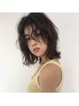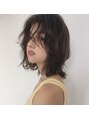 クシャッとラフな動きのあるミディアム。コスメパーマでゆるーいウェーブを。カラーは暗いけど透けるラベンダーアッシュ。ドライな質感でスタイリングするのがオススメです。【代官山robin】