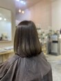 人気のオリーブベージュを目標に少しだけ暗めのマットでカラーしました。毛先に行くにつれて少し明るく透明感があるようになってます!重めのボブも毛先の明るさで少し軽やかになります。