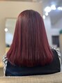 ベースは13レベルくらい。フュージョニストカラーのローズ10レベルでカラーしました。縮毛矯正も同時に施術しました。鮮やかな色味が特徴のカラーです。