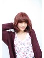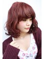 loaweスタイル。カラーは一度ブリーチした後のコクのあるレッドを。カットはロブで巻きやすさを考えています。32mmのアイロンで巻いてキュートに。