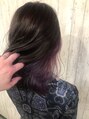 ブリーチ使用のダブルカラー。ハチ下を脱色後、一旦シャンプーしブリーチ用トリートメントでしっかりケア後、レッドバイオレッドをかぶせたインナースタイル。全体のトーンを落ち着かせることで、内側から覗くビビットな発色がより目を惹くゲストスタイル。