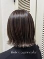 【気に入って頂いたスタイルは、ブックマークをしてご提示ください】前回アウターカラーをし色落ちしたところに再びオンカラーをさせて頂きました!グレーのお色でブリーチ部分には淡く色がはいってくれました!カットもぱつっとボブでオシャレ度がアップ♪