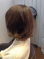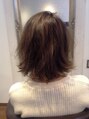 ミディアムスタイルボブベースに軽さを出し、ブリーチハイライト+オンカラーしました♪色のコントラストの強調に♪トリートメントもしてさらさらに♪