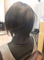 ミディアムベースの長さに、前下がりレイヤーグラデーションにカットして、質感毛量調整を施して、軽さとまとまりを。縮毛矯正をして、超音波トリートメントもして、まとまりやすくサラサラにしています。