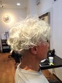 ショートベースの長さに、ツーブロックにして、レイヤーグラデーションにカットして、軽さとまとまりを。全体に、ややしっかりめにパーマをかけて、トリートメントもして、持続性とハリコシも出しています。