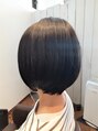 ショートベースの長さに、グラデーションにカットして、質感毛量調整をしながら、軽さと収まりを良くしています。カラーもアッシュ系ブラウンで色を入れ、超音波トリートメントもして色持ちとスタイルの持続性を上げています。