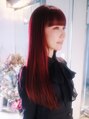 ブリーチ無しのワインレッドカラー発色の良いヨーロッパのカラー剤を使用しております無駄なダメージも少なく色持ちも大変良いですトリートメントカラーをかぶせると更に色落ちしません前下がりのクラッシックロングでよりモード感をプラス