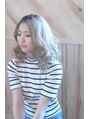 ダブルカラーのハイトーンスタイル☆分け目をセンターにし、外ハネがトレンド!スウィングさせて軽やかにしました☆