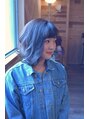 鎖骨の長さのボブラインに表面レイヤーを入れ軽さを出してます☆眉下の長さのバングはシースルーになってます☆ブルーアッシュで透明感アップに☆外ハネのアクティブなスタイル☆