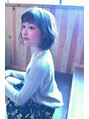 Sカールを与え軽やかさを作ってます☆肩くらいのボブでオンザ眉のバング★ブルーアッシュで透明感を出してます☆