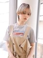 うざバングのウルフマッシュショートでクールフェミニン/ホワイトブロンド/ホワイトベージュ/ブリーチカラー/斜めバング/シースルーバング/ラウンドバング/かきあげ前髪/耳かけ/伸ばしかけ/小顔ショート/抜け感ショート/ショートカットレイヤー/ウルフカット