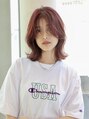ワインレッド/流し前髪/ウルフ/外ハネ/ミディアム/SOLセンター南