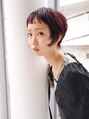 顔回りレイヤーカットとぱっつんショートバングが個性的な大人ガーリーショート。バーガンディやチェリーピンク、ミルクティーカラーの暖色系カラー、外国人風ブリーチオンカラーやアンブレラカラーがトレンド。耳かけや伸ばしかけヘアアレンジもご相談を。