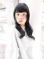 ぱっつん厚めバング&黒髪の重めスタイルは、顔回りのシャギーカットとハイレイヤーウルフでスッキリ小顔に仕上げます。毛先のエアウェーブパーマやレイヤーパーマでニュアンス感ある動きに。オリーブグレージュやダークアッシュの透明感カラーがオススメ。