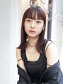 シースルーぱっつん前髪が大人ガーリーな外ハネミディアムレイヤー。ウェットヘアで透明感。耳かけもお似合い。斜めバングやシースルーバング、かきあげ前髪やセンターパートにイメチェンもOK。ベージュピンクやレッドブラウンの暖色系カラーが大人可愛い。