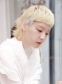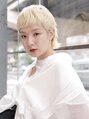 ホワイトブリーチのハイトーンカラーで周囲と差をつけた個性的なマッシュウルフショート。オン眉ショートバングやぱっつん前髪、前髪パーマで目力強調。トップにボリュームをつけてスタイルUP効果。くせ毛風カールでフレンチカジュアルなヘアアレンジもOK。