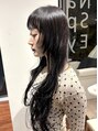 ナチュラルなウェーブ感のレイヤーロングパーマ。ショートバングでオシャレ感をさらに演出しつつ、カールしすぎない柔らかい動きで抜け感を。顔まわりには存在感のあるレイヤーを入れてあげると、スタイリングも簡単にできます!