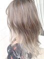 毛先につれて入れる量を増やしたバレイヤージュ風ハイライト。ブリーチをした上から入れたグレージュとホワイトシルバーの組み合わせが綺麗なセミロングです☆