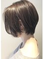 首元をスッキリとし、フロント部分は長めにカットしたメリハリのあるショートスタイル♪チャコールグレージュのカラーリングで透明感をプラスしました♪