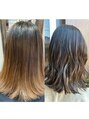 Before→Afterです!お顔まわりにレイヤーをいれて、黄色を抑えたダークトーンの深海アッシュ。おしゃれです!