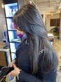 ブルーブラックで大人っぽい韓国ヘアスタイル☆顔まわりに少しレイヤーを入れる事で韓国風を表現してます☆スタイリングの事も是非ご相談ください☆
