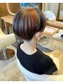 刈り上げショート、三毛猫カラー。髪質改善/プレミークトリートメント/炭酸スパ/ヘッドスパ/ソーダスパ/カットカラー/インナーカラー/イヤリングカラー/ケアブリーチ/ヘアメイク/ヘアセット/パーティセット/郡山