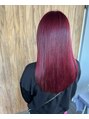 ワインレッド。ブリーチ1回。髪質改善/プレミークトリートメント/炭酸スパ/ヘッドスパ/ソーダスパ/カットカラー/インナーカラー/イヤリングカラー/ケアブリーチ/ヘアメイク/ヘアセット/パーティセット/郡山